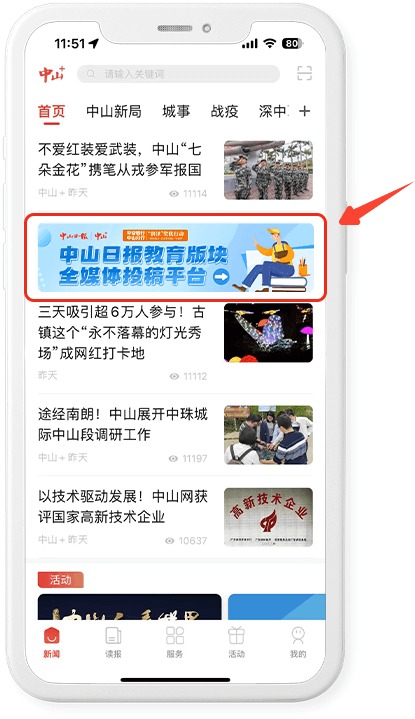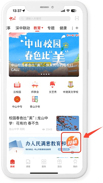 (2)或从中山+“教育”频道,点击“投稿”浮标进入;