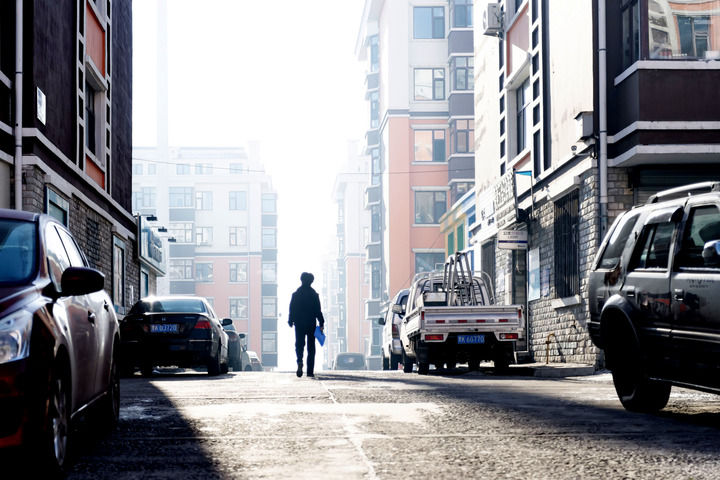 ▲在黑龙江省七台河市桃山区,社区民警刘欣在管辖社区内巡逻(2022年1月9日摄)。新华社记者 谢剑飞 摄