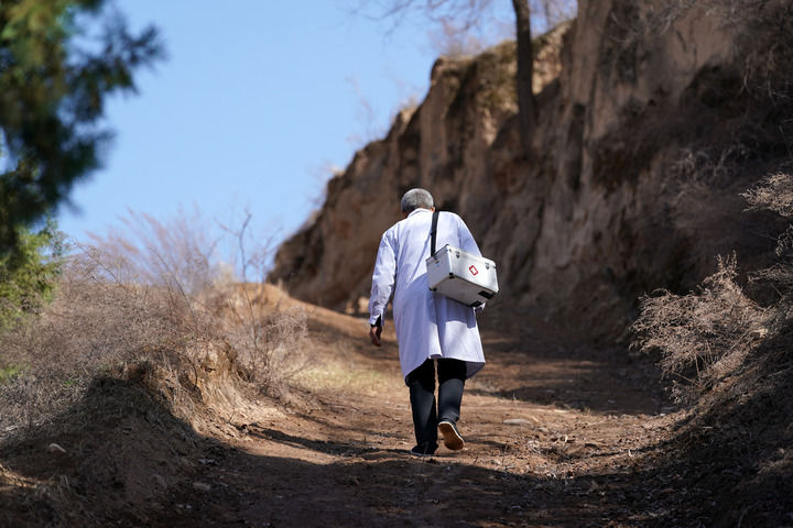 ▲在山西省吕梁市石楼县和合乡铁头村,村医张尚保走在出诊的路上(2021年3月23日摄)。新华社记者 詹彦 摄
