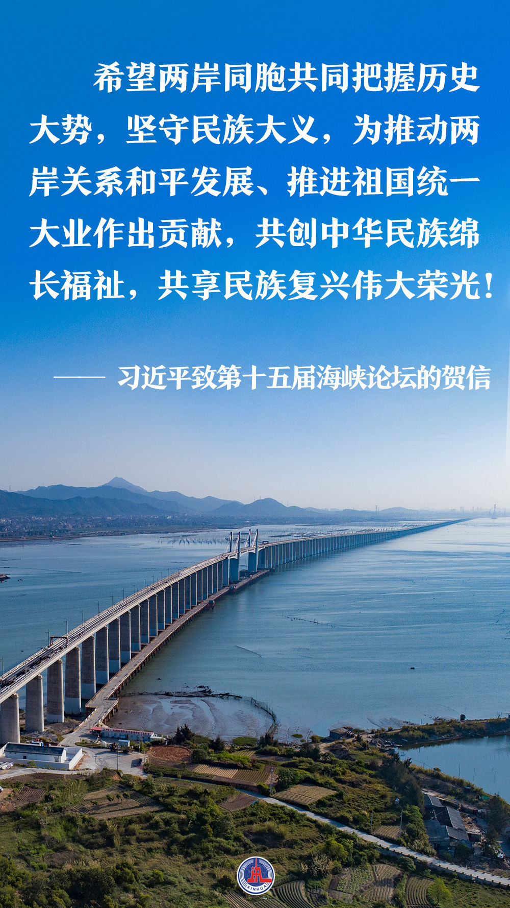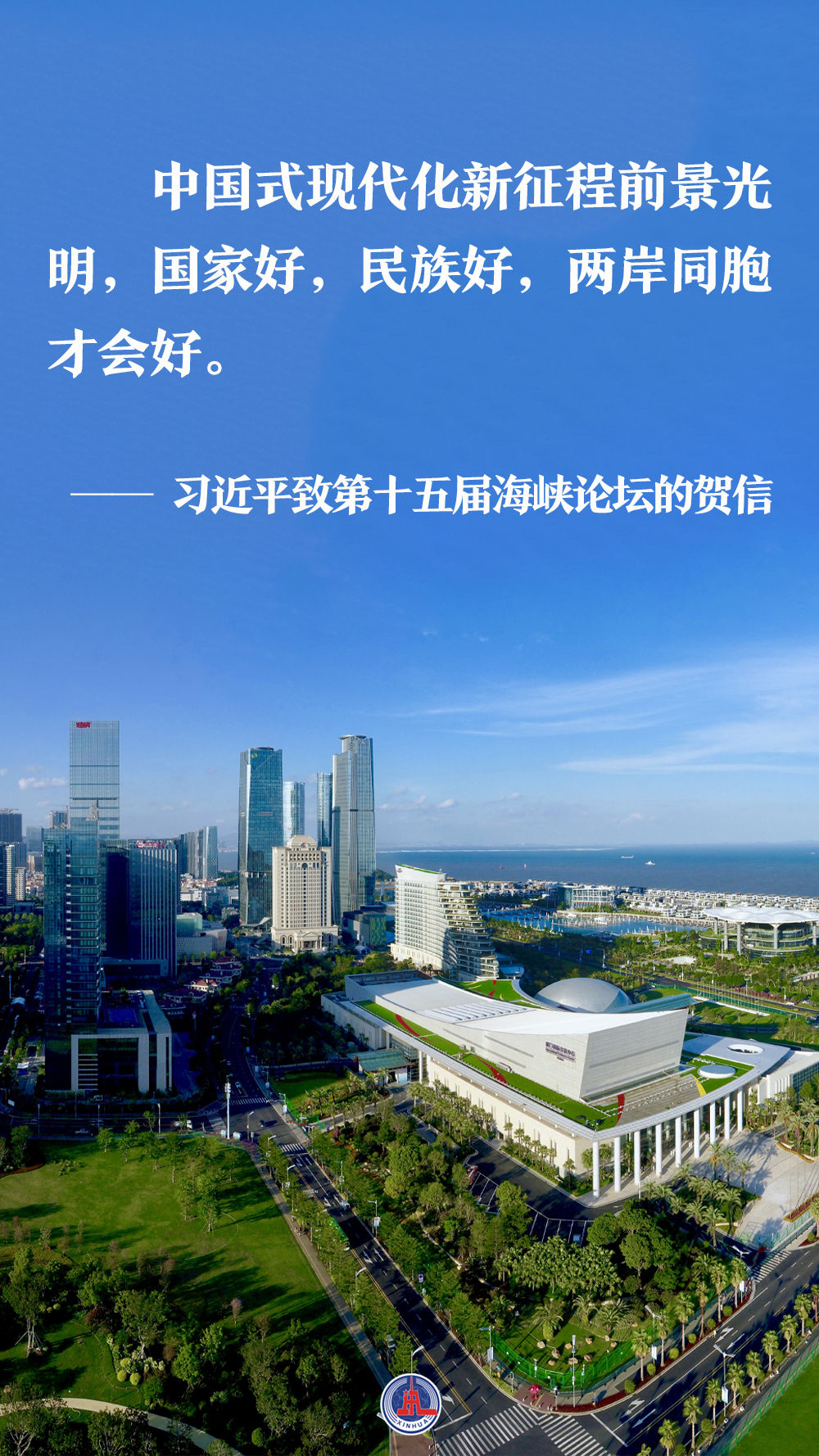 6月17日,中共中央总书记、国家主席习近平向第十五届海峡论坛致贺信。
